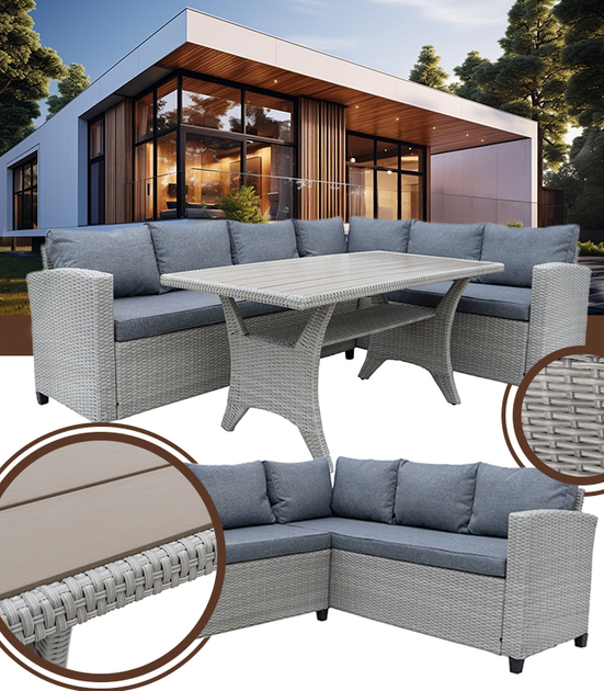 Набір садової меблів «Стокгольм» із техноротангу (кутовий диван з подушками + стіл), Сірий