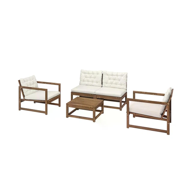 Садовий комплект IKEA NMMAR 4 предмети (диван, 2 крісла, стіл) матеріал світло-коричневий /подушки світло-сіро-бежеві