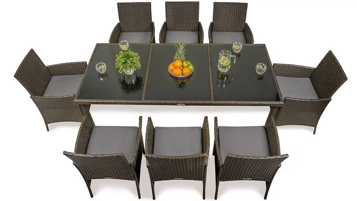 Набір садових меблів Just Relax Big Family 8 темно-коричневого кольору з Ротангу зі сталевим каркасом (Стіл, 8 Крісел)