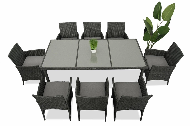 Набір садових меблів Just Relax Big Family 8 Графітового кольору з Ротангу зі сталевим каркасом (Стіл, 8 Крісел)