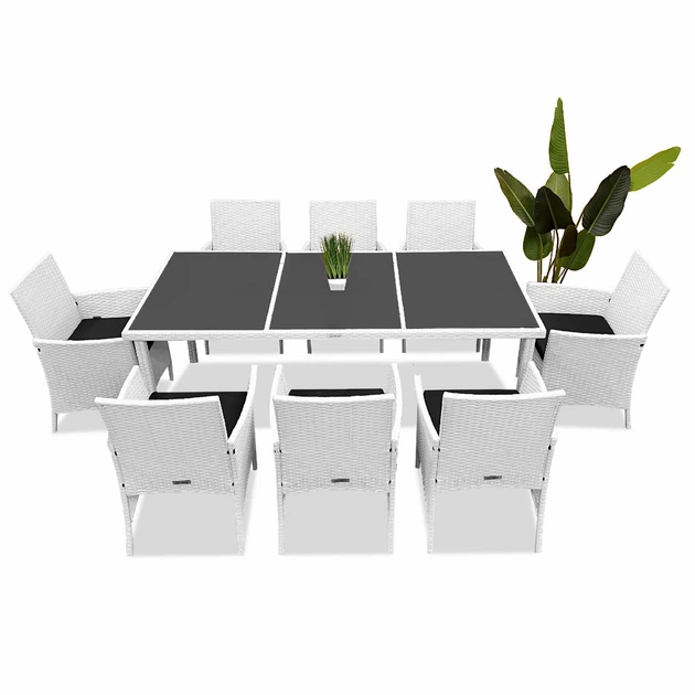 Набір садових меблів Just Relax Big Family 8 білого кольору з Ротангу зі сталевим каркасом (Стіл, 8 Крісел)