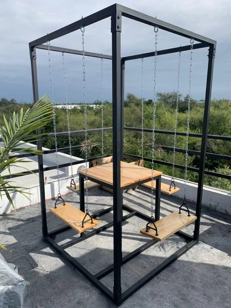 Садовий стіл з підвісними сидіннями в стилі loft 150150270 см