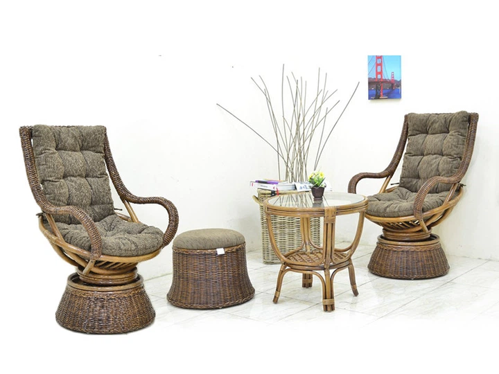Комплект плетених меблів з натурального ротанга 2 крісла-гойдалки, пуф та кавовий столик