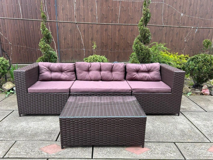 Диван трансформер з ротанга зі столом шоколадний (00279)
