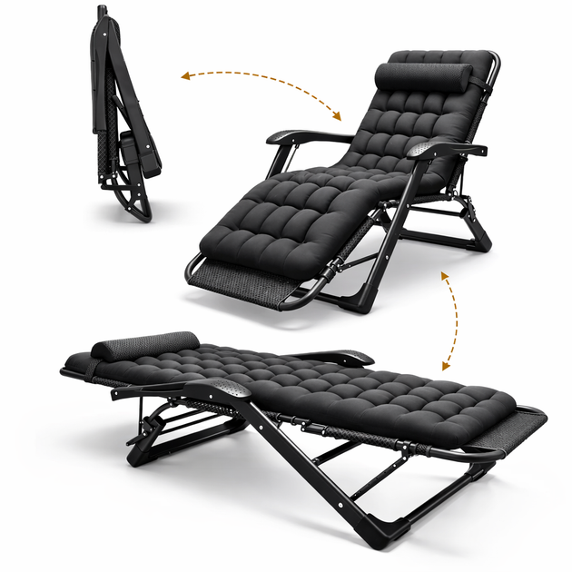 Розкладне кресло шезлонг садовий з подушкою 178*66*98 см WCG FCB-S06PP чорний для вулиці та приміщень із навантаженням до 15