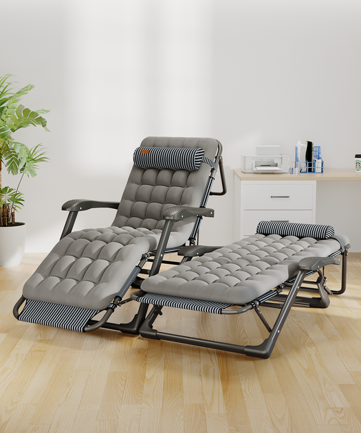 Розкладне крісло шезлонг садовий с подушкой 178*66*98 см WCG FCB-S01PP серое, металлический каркас до 150 кг