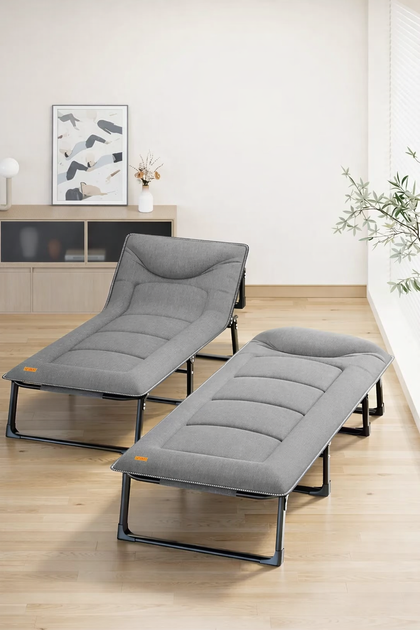 Розкладне ліжко шезлонг 190х70х30 см WCG FB-S14 + матрац сіре для вулиці та приміщень із навантаженням до 150 кг