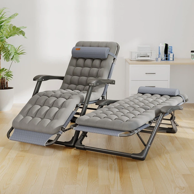 Розкладне крісло шезлонг (ліжко) з подушкою 178*66*98 см WCG S-03 сіре для вулиці, саду та приміщень до 150 кг