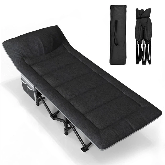Розкладне ліжко шезлонг 189х67х35 см WCG CC-S10 + матрац і подушка чорна для вулиці та приміщення з навантаженням до 200 кг