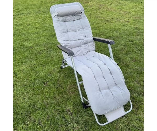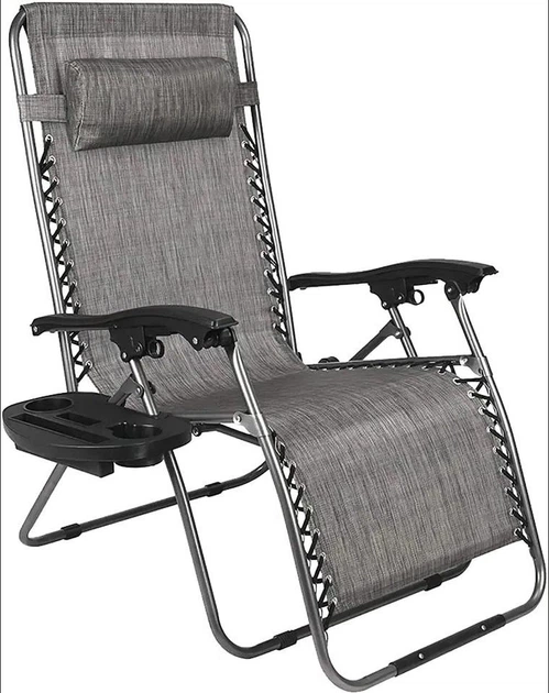 Садове крісло Шезлонг лежак до 120 кг Bonro СПА-167A сірий, з підлокітниками, м'якою подушкою підголовником
