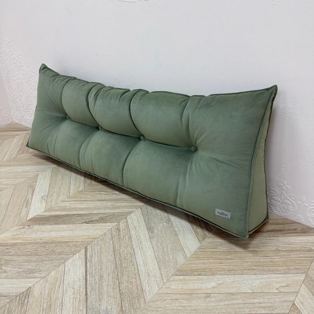 Подушка-підголів'я велюрова 150х45 см оливкова
