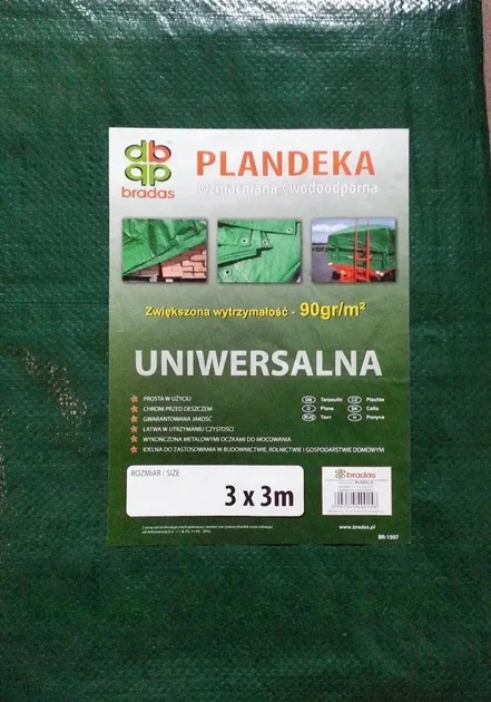 Тент тарпауліновий BRADAS 34 м, 90 г/м, водонепроникний, зелений