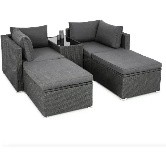 Створіть свою зону комфорту в саду або на терасі разом із багатофункціональним модульним набором садових меблів Alzano. Модульний комплект меблів для тераси забезпечить вам незабутні моменти відпочинку та спілкування з близькими. Набір складається з декількох елементів, які можна комбінувати для створення різних конфігурацій: два крісла, два пуфи, які можуть об'єднатися в лежаки, й журнальний столик. Меблі з високоякісного технороту вирізняються міцністю і стійкістю до погодних умов.