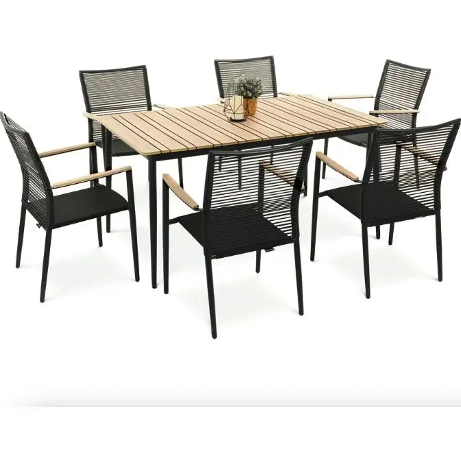 Zakito Home Zestaw Ogrodowy Rattanowy 7 Elementowy Czarny 160X80cm Zh3156513