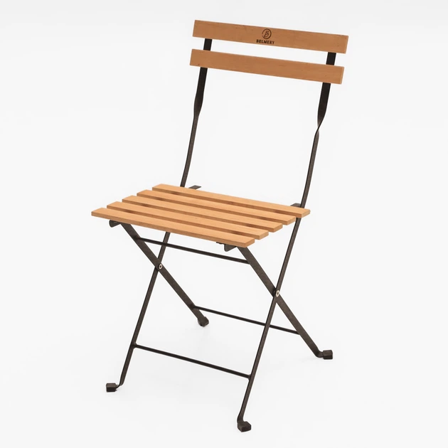 Розкладний стілець Belmery 7939 см., чорний металевий каркас та сидіння з натурального дерева кольору вільха