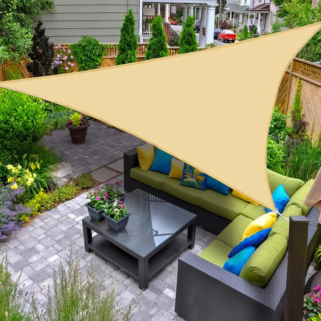 Тент парус тіньовий трикутний 3х3х3м Водовідштовхувальний навіс від сонця та дощу Оксфорд Бежевий