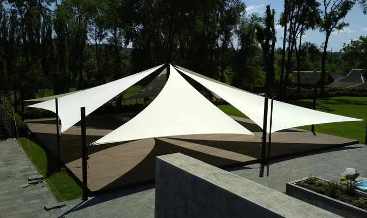 Навіс від сонця 2х3м, тіньовий парус з сітки. Колір - Молочний
