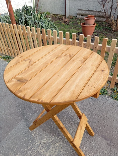 Стіл садовий розкладний круглий дерев'яний 60 см