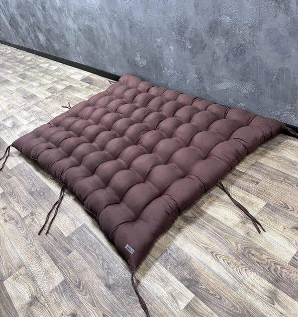 Подушка з каретною стяжкою на підвіконня панама 100х50 см коричнева