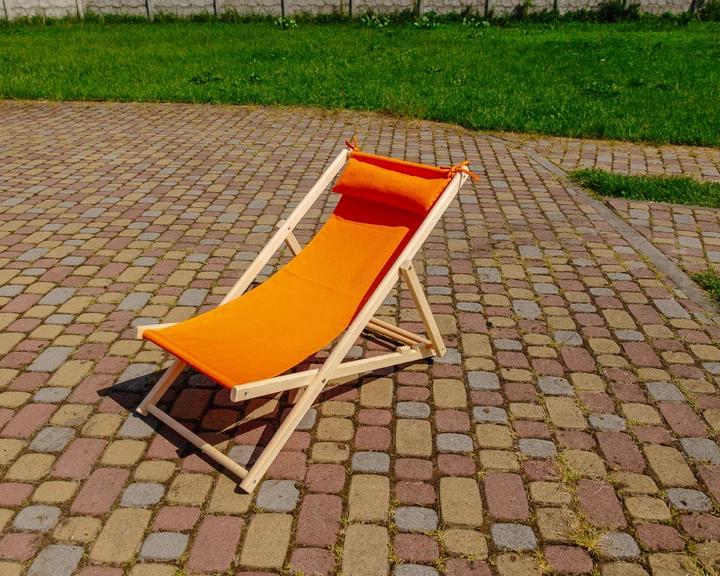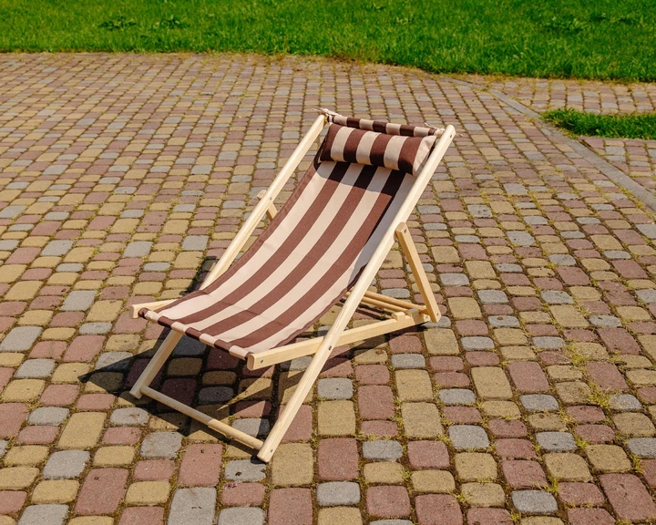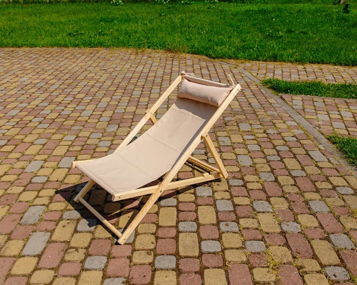 Розкладне дерев’яне крісло шезлонг з тканиною, для дачі, пляжу чи кафе. Крісла садові терасні дерев'яні. Лежак шезлонг XRMAS