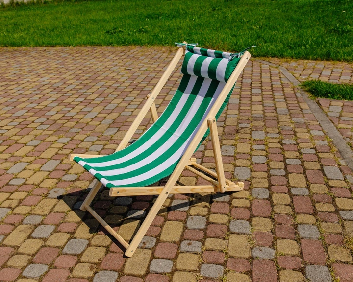 Кресло шезлонг дерев'яне розкладне з підголовником XRMaster Зелено-біла смужка