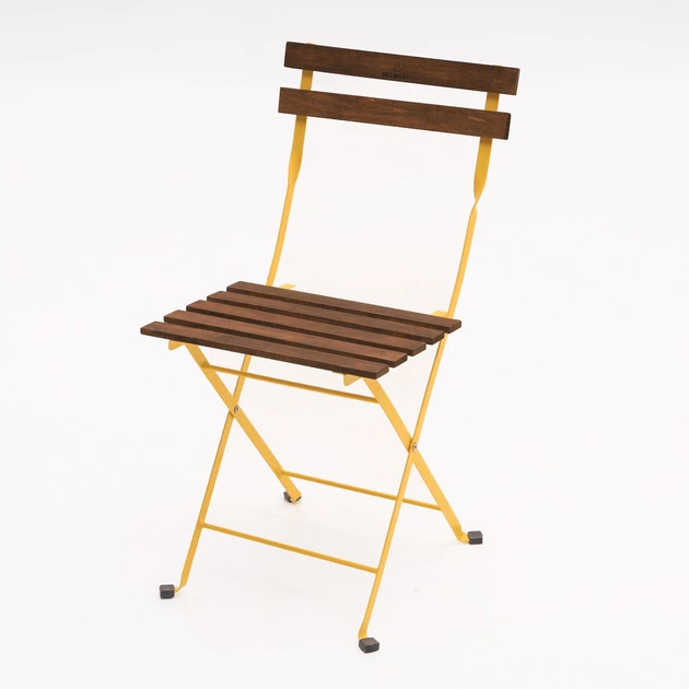 Розкладний стілець Belmery 7939 см., жовтий металевий каркас та сидіння з натурального дерева кольору горіх