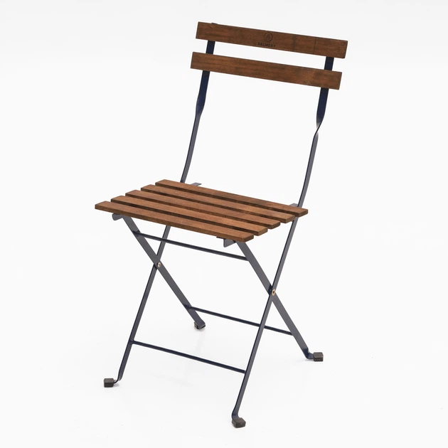 Розкладний стілець Belmery 7939 см., синій металевий каркас та сидіння з натурального дерева кольору горіх