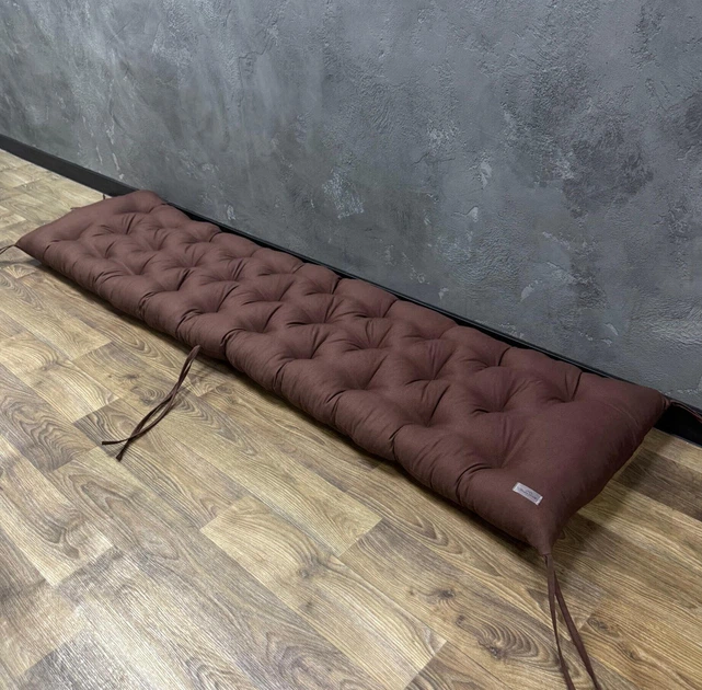Подушка з каретною стяжкою на підвіконня панама 150х50 см коричнева
