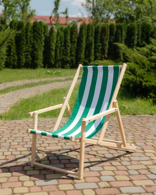 Шезлонг дерев'яний розкладний XRMaster в зелено-білу смужку з підлокітниками