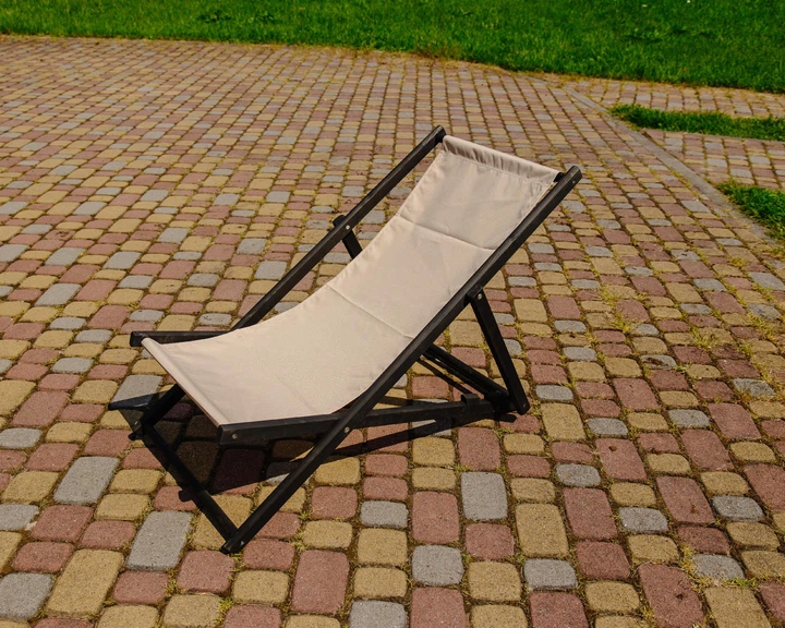 Розкладне дерев’яне крісло шезлонг з тканиною, для дачі, пляжу чи кафе. Крісла садові терасні дерев'яні. Лежак шезлонг XRMAS