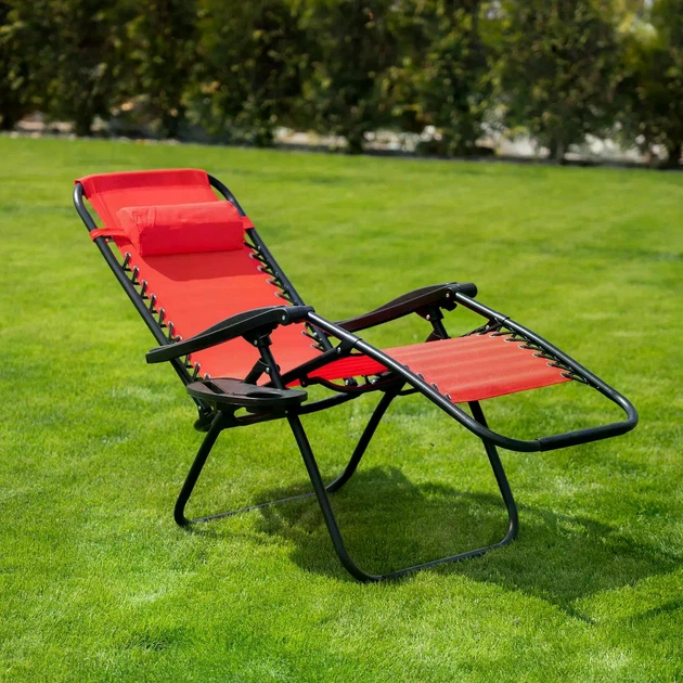 Крісло-шезлонг Virgo Zero Gravity Red з підсклянником для саду та пляжу