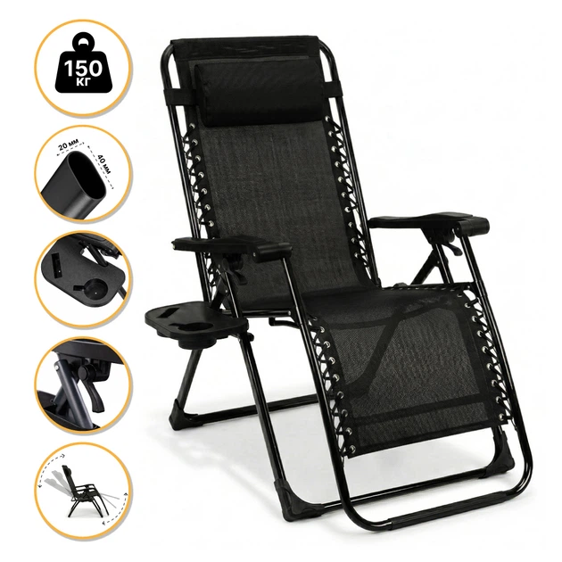 Кресло-шезлонг для релакса LEOBRO Zero Gravity Premium Black (LB-ZGC-G2-BLK)