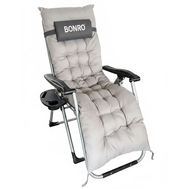 Шезлонг крісло садовий, туристичний Bonro B-03 сірий + подушка (42401165)