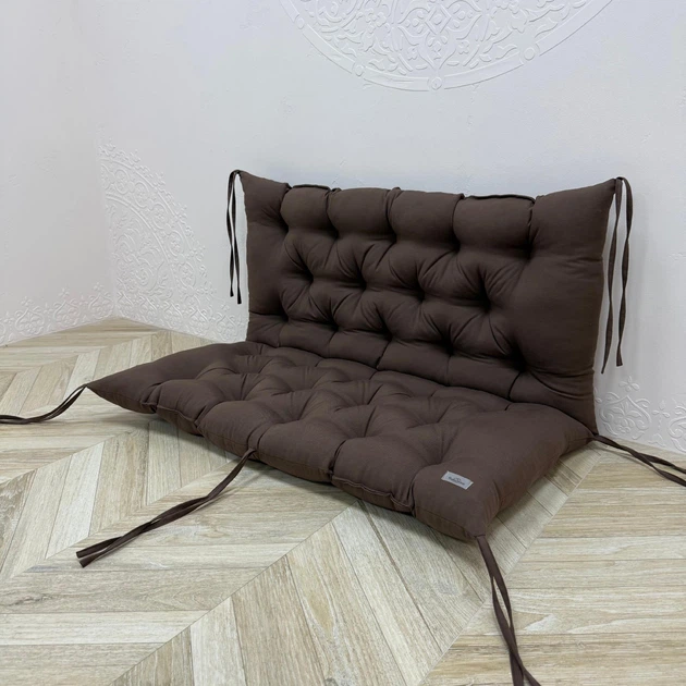 Подушка з каретною стяжкою на садові меблі панама 100х50х50 см коричнева