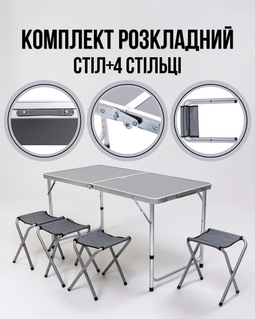 Розкладний стіл + 4 стільці кемпінговий набір для пікніка, риболовлі, відпочинку, туризму Сірий