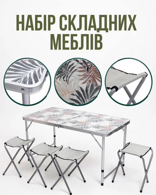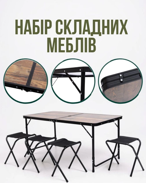 Набір складних меблів для кемпінгу стіл + 4 стільці набір меблів для пікніка туристичний
