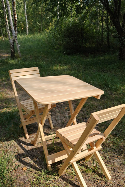 Дерев'яний розкладний набір 60х60см столик + 2 стільці зі спинкою