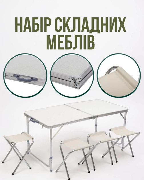 Стіл і 4 стільці для пікніка набір туристичних алюмінієвих складних алюмінієвих меблів для кемпінгу