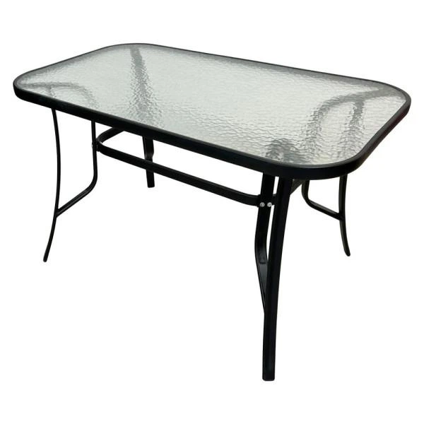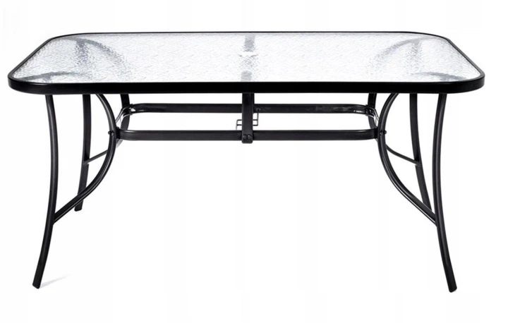 Стіл скляний Bonro прямокутний з отвором для парасолі на 6 персон зі сталі та загартованого скла 1207072 см до 50 кг Чорний