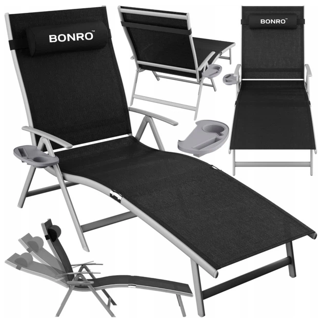 Садовий лежак шезлонг з алюмінієвою рамою Bonro BG-008 чорний