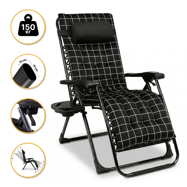 Чорне оксамитове крісло-шезлонг LEOBRO Zero Gravity Premium Plus (LB-ZGC-K3-BLK)