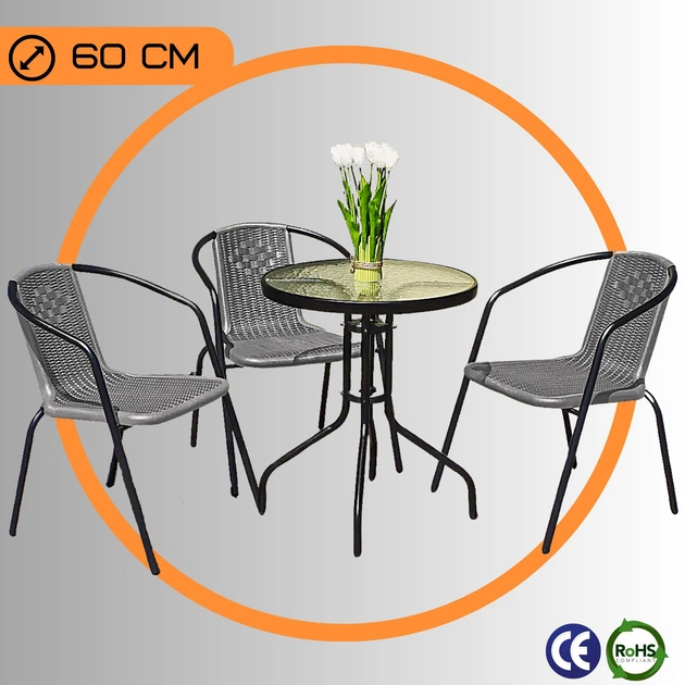 Комплект Садових Меблів зі Штучного Ротанга для 3 осіб 4Points Bari - 3 Сірий для дачі для тераси Польща