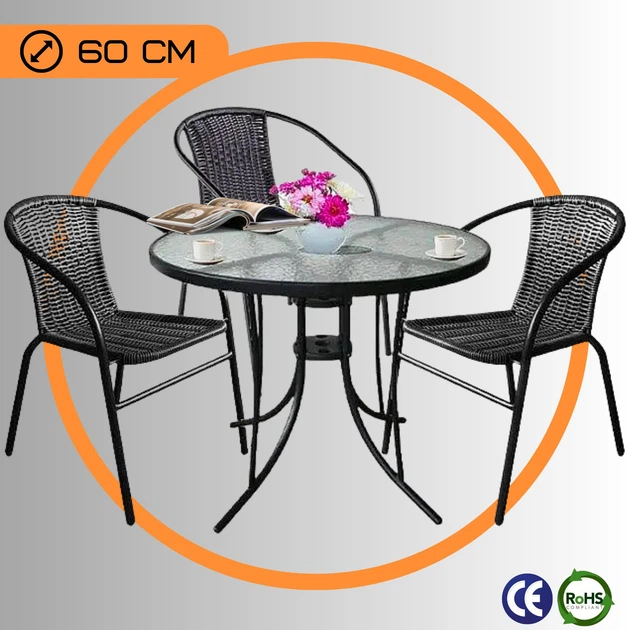 Комплект Садових Меблів зі Штучного Ротанга для 3 осіб 4Points Bari - 3 Чорний для дачі для тераси Польща