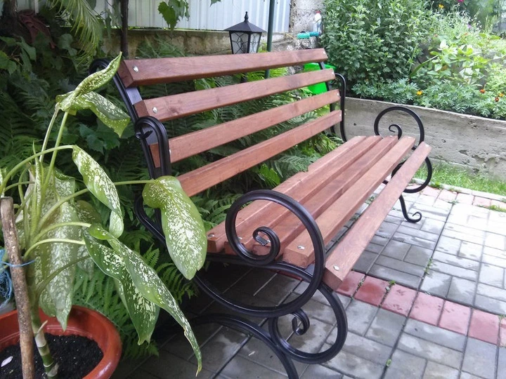 Лава дерев'яна з кованими елементами та підлокітниками Асорті Спіраль 1.30 м