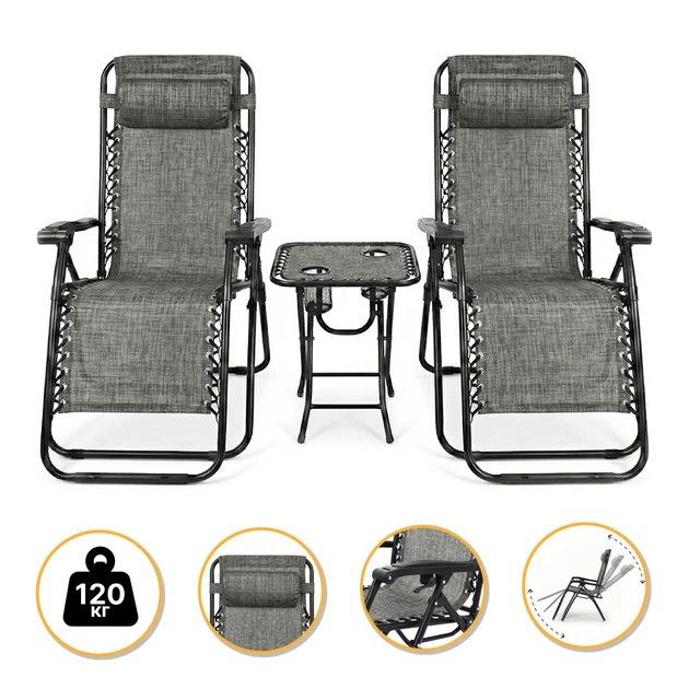 Комплект 2-а розкладні крісла-шезлонга + столик Zero Gravity LEOBRO Сірий (LB-ZGT-F3-GRY)