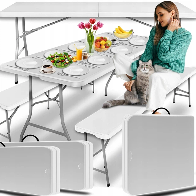 Розкладний набір садових меблів стіл та 2 лави Gordon Комплект для пікніка Білий