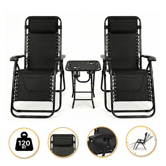 Комплект 2-а розкладні крісла-шезлонга + столик Zero Gravity LEOBRO Чорний (LB-ZGT-F3-BLK)