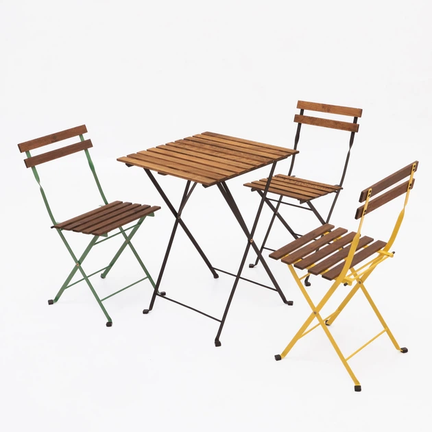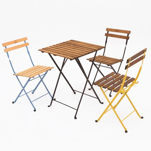 Комплект розкладних садових меблів на 3 персони "Ранок в Провансі" - стіл та 3 стільці ( металевий каркас + дерево )