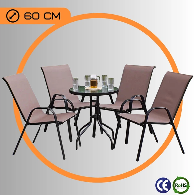Комплект Садових Меблів Круглий Стіл + 4 Крісла Текстилен 4Points Udine-4 Коричневий для дачі для тераси для лоджії для балк