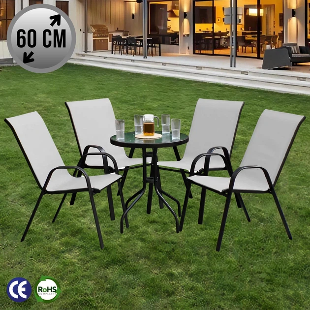Комплект Садових Меблів Круглий Стіл + 4 Крісла Текстилен 4Points Udine-4 Сірий для дачі для тераси для лоджії для балкону